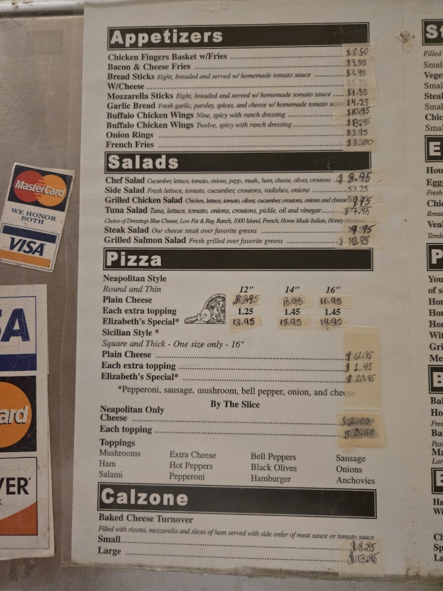 The menu is packed with fresh ingredients and plenty of options to suit any craving. From rich, cheesy pizzas to flavorful salads and tempting appetizers, you'll feel right at home with every bite. Plus, their portion sizes are generous, so you won't leave hungry. Whether you're dining in or ordering to-go, Elizabeth's Pizza Menu ensures a satisfying meal every time. With friendly service and comforting flavors, it's the perfect spot for a casual meal with friends or family.